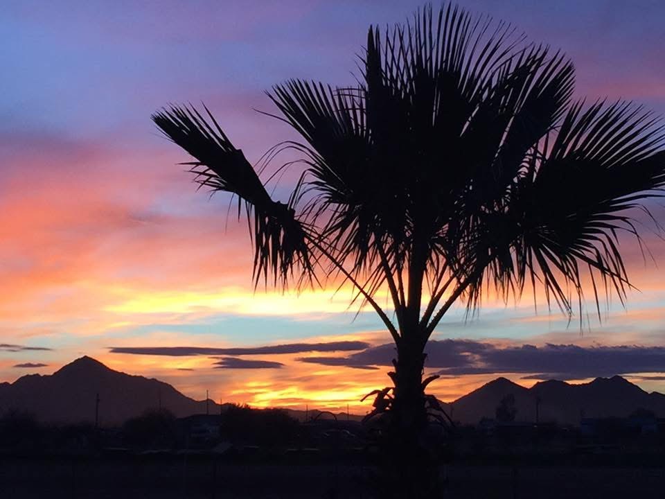 - Palm Trees & Sunsets. Home #14 was new construction located in the SW Phoenix metro area on 1 acre of open, desert land. We did a lot of landscaping to this home, including patio pavers, palm trees, fruit trees, irrigation, a storage shed, a hot tub, and drilling pipe fencing with a solar powered, remote controlled gate. We bought a new RV with 2 air conditioners!